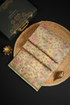 The body of this saree showcases an all-over floral jamdani pattern on a cream base, offering a delicate design that exudes timeless elegance.