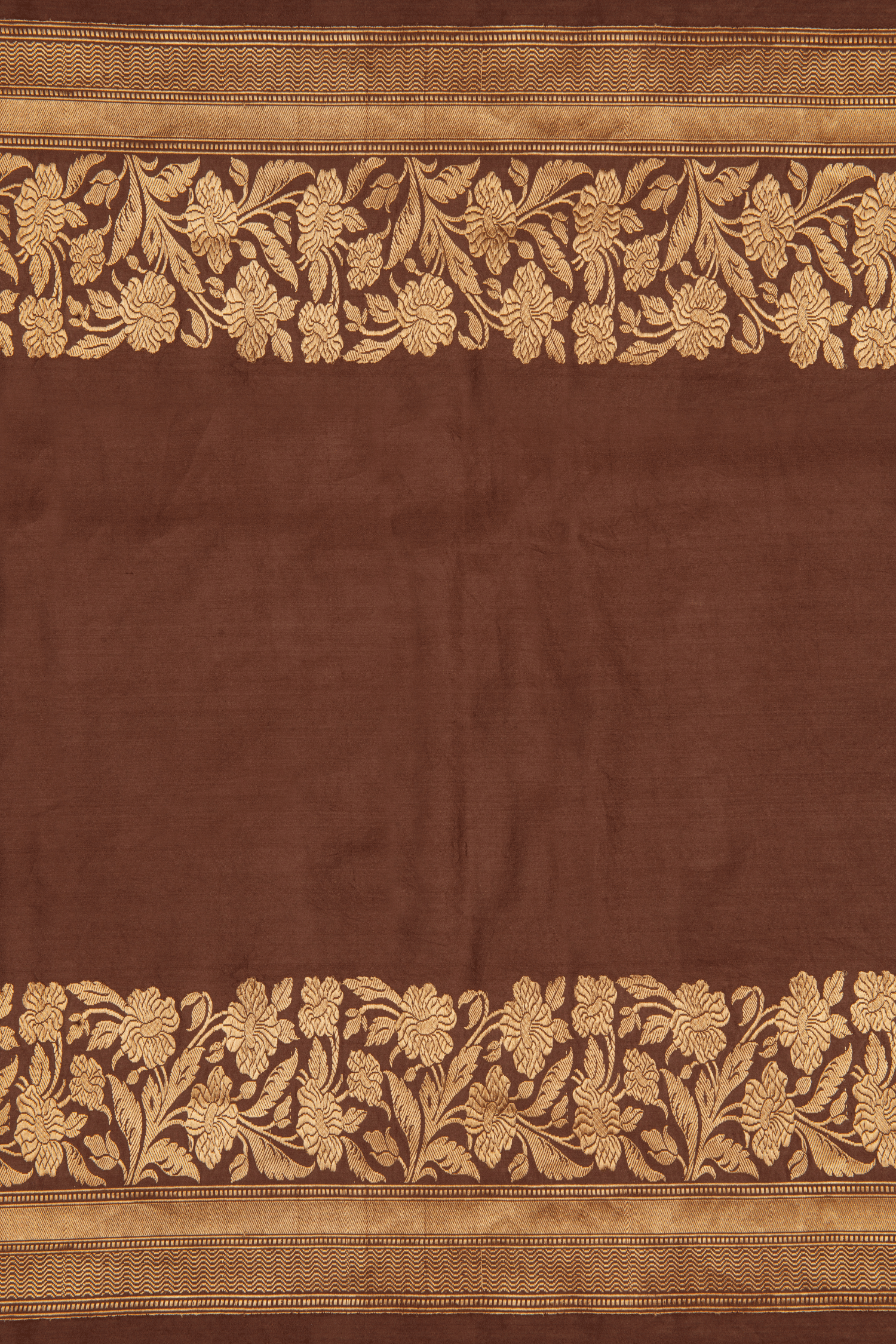 This exquisite Mushroo saree in a rich coffee brown hue embodies refined beauty and traditional craftsmanship. The smooth silk-cotton blend gives it a signature glossy finish, while the body is adorned with delicate golden buttas that add a subtle shimmer.