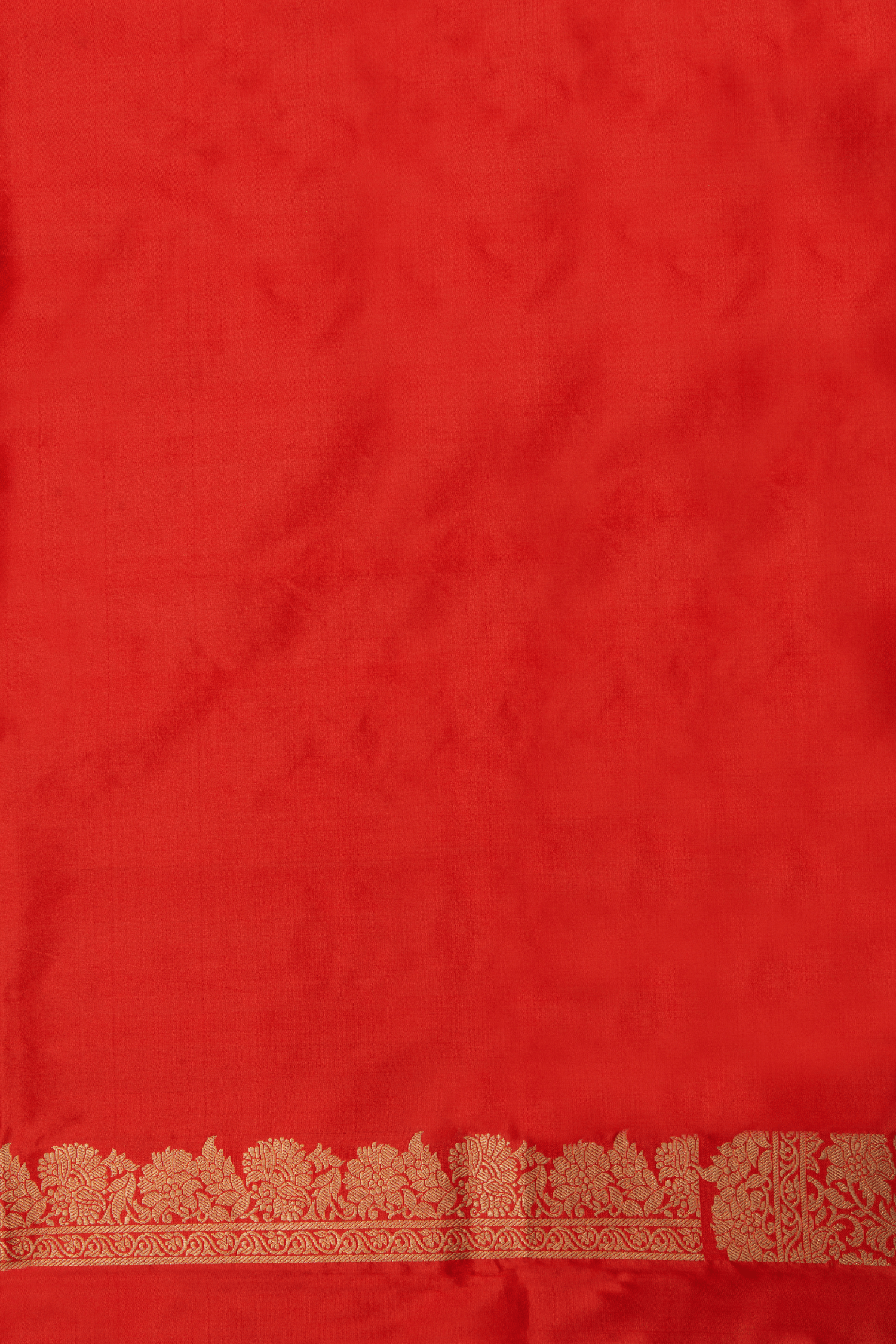 This exquisite Banarasi Silk Saree in vibrant red is adorned with intricate diagonal zari patterns across the body, radiating regal charm.