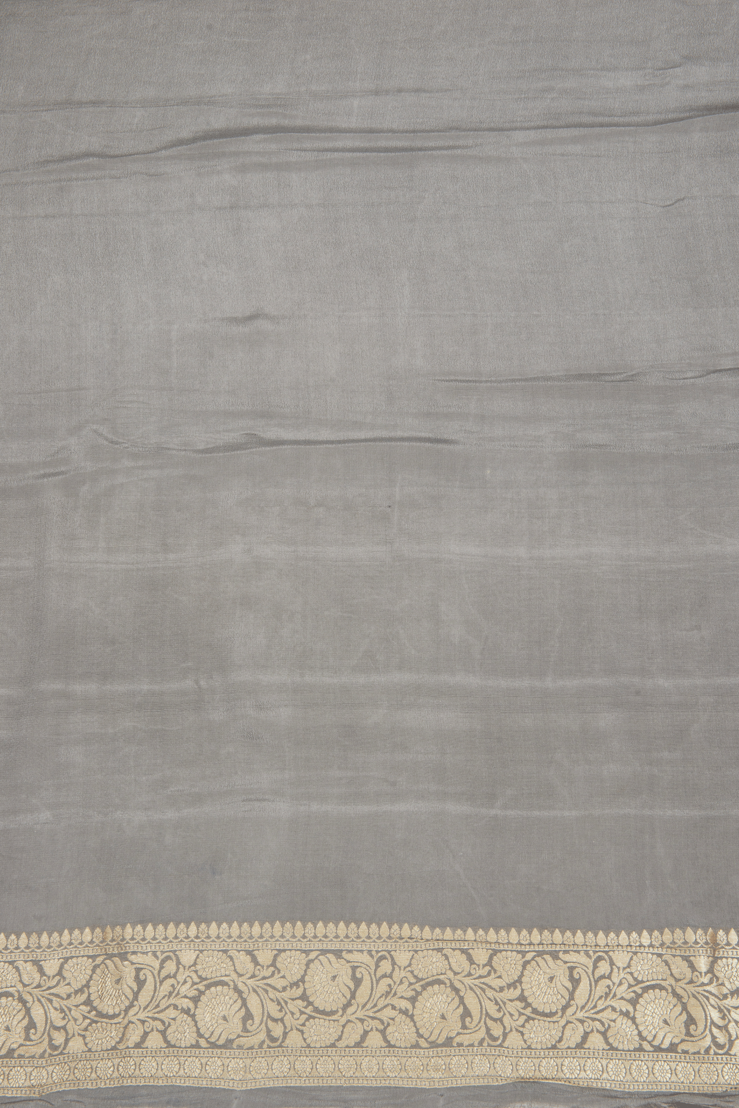 Woven in the fine weaving techniques of Banaras, this charming drape has beautiful jaal work all over the body in grey base, rendered in gold zari.