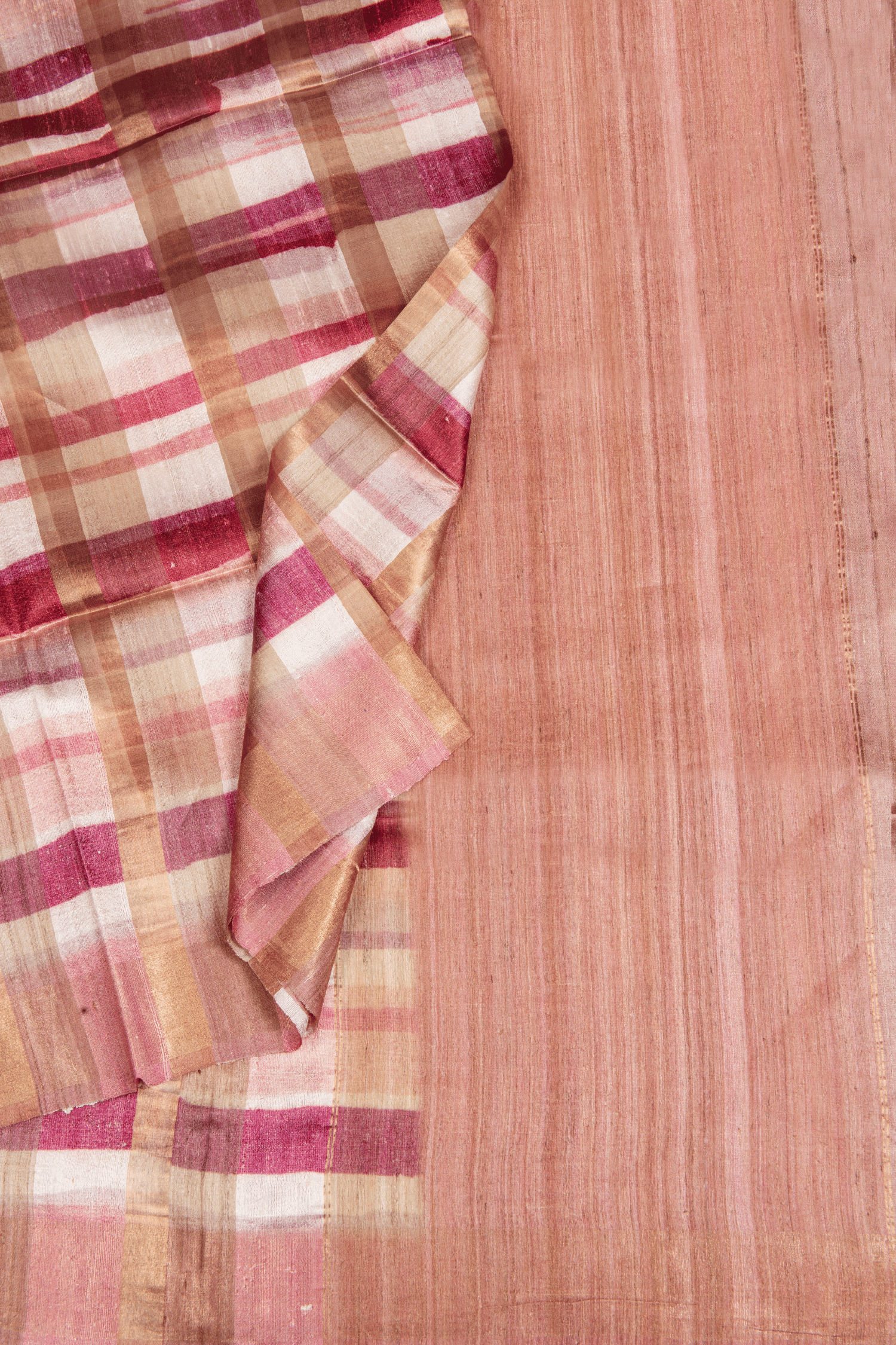 Add a touch of elegance to your wardrobe with our Tussar Printed multicolor rust checks saree.